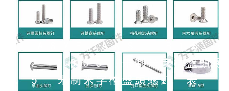 1.機螺釘 2.自攻螺釘 3.鉆尾螺釘 4.墻板釘 5.纖維板釘 6.木螺釘7.六角木螺釘 8.不脫出螺釘 9.組合螺釘 10.微型螺釘 11.家具螺釘 12.電子螺釘 13.鏈帶螺釘頭型 :1.六角頭(hexagon head)2.六角頭法蘭面(hexa